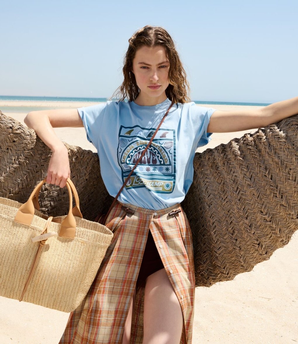 This summer, the Parisienne responds to the call of the open sea. She leaves the effervescence of the city for the coast, drawn in by the rhythm of lapping waves and the dazzling sunlight. She’s bound for the ocean, where board sports carve a way of life that’s free and instinctive. Here, surfing extends beyond the water; it embodies a frame of mind, a joyful energy infusing each gesture and silhouette.